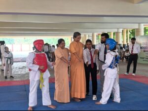 📣 प्रधानाचार्या महोदया ने सभी विजेताओं को मेडल देकर सम्मानित किया और आगामी प्रादेशिक ताइक्वांडो टूर्नामेंट के लिए चयनित स्वर्ण विजेताओं को विशेष शुभकामनाएं दीं। उन्होंने सभी प्रतिभागियों को भविष्य में भी खेल भावना के साथ उत्कृष्ट प्रदर्शन करने के लिए प्रेरित किया।