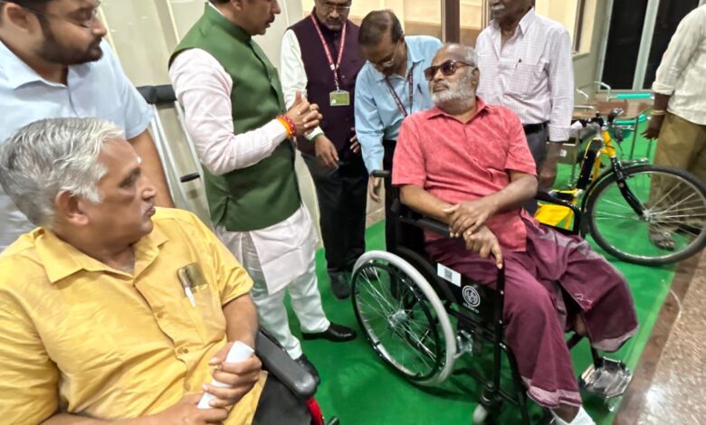 मंत्री ने इस दौरान ज़रूरतमंद मरीजों को व्हीलचेयर भी वितरित की और स्वास्थ्य शिविर का अवलोकन भी किया।