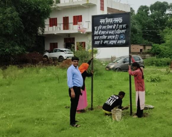खाली पड़ी नगर निगम की करोड़ों की जमीन हुई चिन्हित-संपत्ति अधिकारी ने लगाया बोर्ड