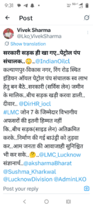 इस मामले को लेकर लखनऊ के समाजसेवी विवेक शर्मा ने सोशल मीडिया प्लेटफॉर्म ‘एक्स’ पर शिकायत दर्ज कराते हुए इंडियन ऑयल कॉरपोरेशन के उच्च अधिकारियों और संबंधित विभागों का ध्यान आकृष्ट कराया है।