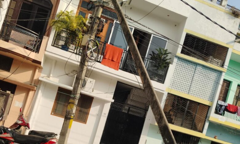 इंदिरानगर की लिबर्टी कॉलोनी में बिजली विभाग की लापरवाही, सड़क के बीच गाड़े गए पोल बने लोगों की परेशानी