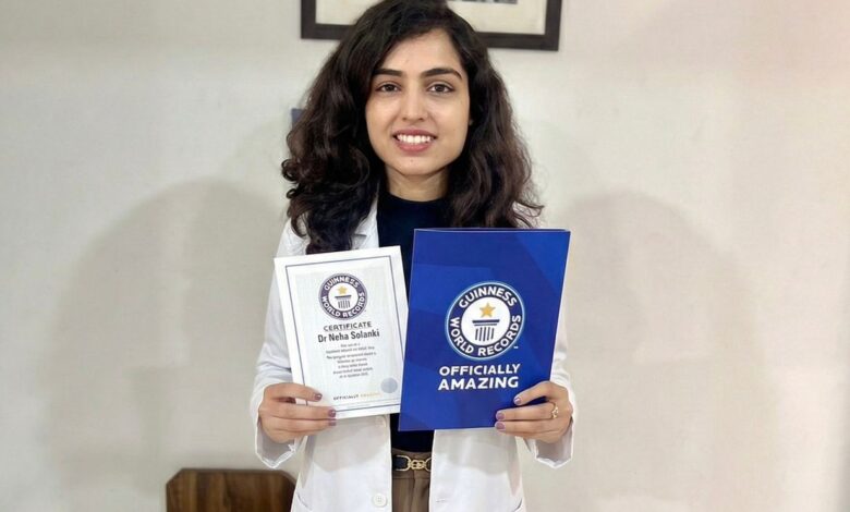 . नेहा सोलंकी को डर्मेटोलॉजी अवेयरनेस डर्माथॉन में सहभागिता के लिए मिला Guinness World Records का प्रमाण-पत्र