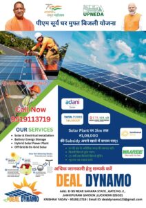 उत्तर प्रदेश में सौर ऊर्जा को बढ़ावा देने के लिए केंद्र सरकार की पीएम सूर्य घर मुफ्त बिजली योजना तेजी से लोकप्रिय हो रही है। इसी कड़ी में से संबद्ध सेवाओं के तहत लखनऊ में Deal Dynamo लोगों को किफायती सोलर समाधान उपलब्ध करा रहा है।
